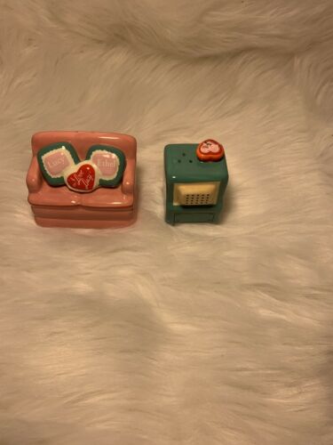 I Love Lucy Salt & Pepper Shakers. Pink couch and blue TV set.