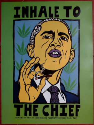 Title (ebay affiliate link): MINT BARACK OBAMA INHALE TO THE CHIEF POLITICAL POSTER