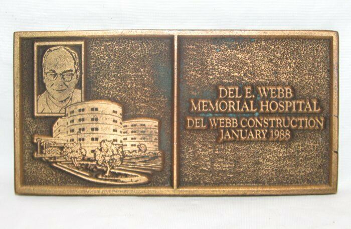 Vintage DEL WEBB CONSTRUCTION Memorial Hospital January 1988 Brass Paperweight