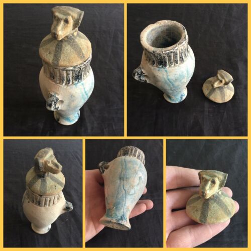 Title (ebay affiliate link): Rare ancient Egyptian blue vase offering with hieroglyphics, 300 bc