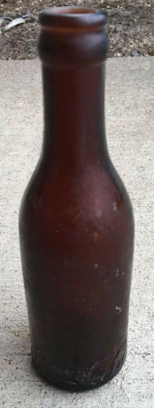 RARE 7 1/2" AMBER STRAIGHT SIDE COCA COLA BOTTLE CUMBERLAND MARYLAND 1895-1906