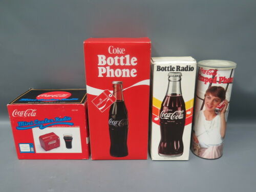 Title (ebay affiliate link): Lot 4 Vintage Coca Cola Bottle Radio Mini Cooler Can-Shaped Phone w Boxes AS IS