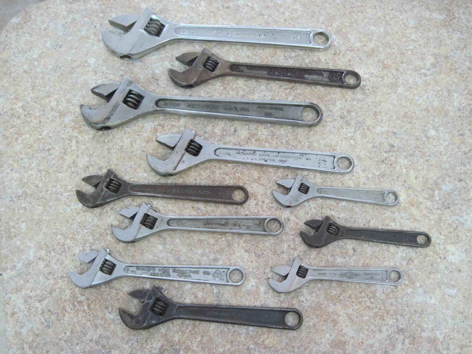 Vintage USA Adjustable Wrench Lot~Proto~Craftsman~Diamond Horseshoe~+~12-10-8-6