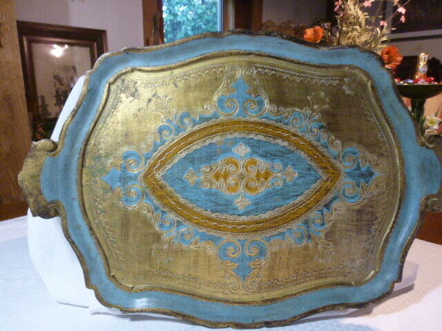 Title (ebay affiliate link): Large Oversized Blue Gold Vintage Florentine Wood Gold Gild Tray Platter 26 x 18