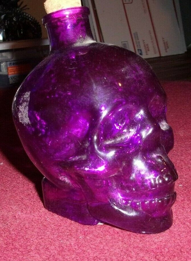 Title (ebay affiliate link): Purple Mercury Glass Skull Potion Booze Bottle 5 1/2" tall x 4 1/2 long x 3 1/2