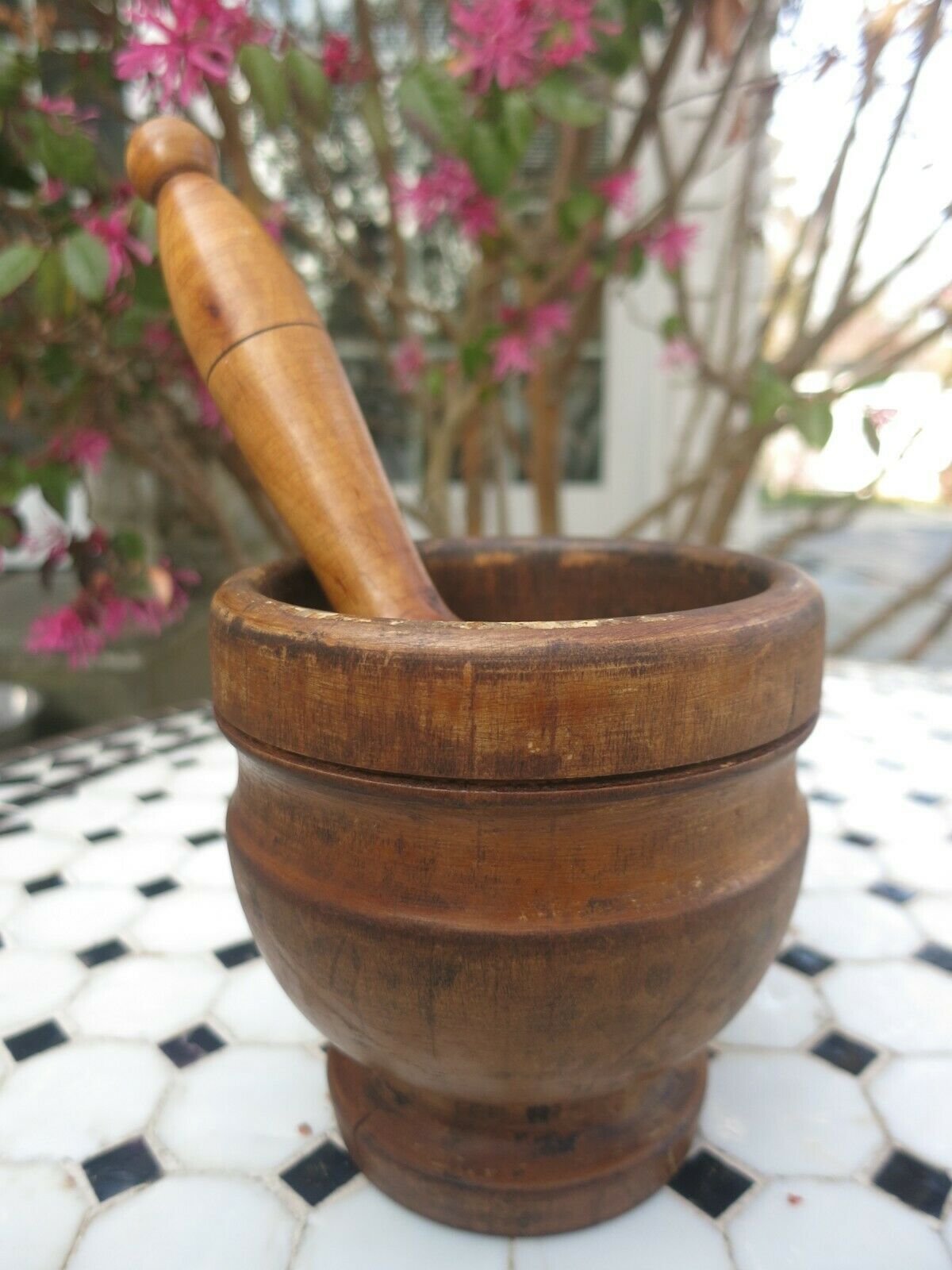 Title (ebay affiliate link): Antique Italy Wood Mortar & Pestle Pantry Apothecary Spice Grinder