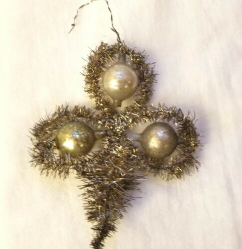 Title (ebay affiliate link): Early 1900s Three Leaf Clover, Silver & Gold Beads. German Tinsel and Glass Orn.