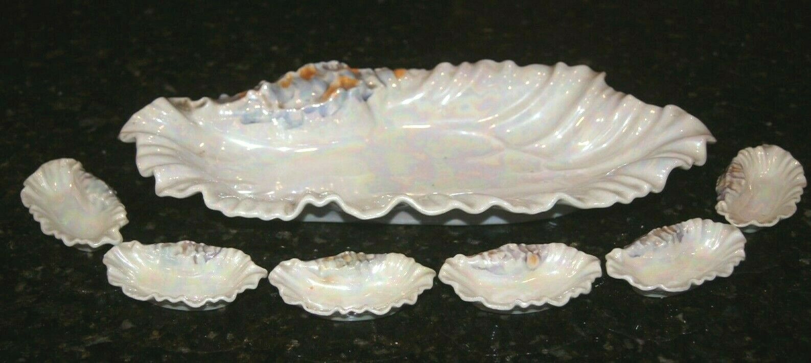 Lovely Vintage Oyster Dish Plate with 6 Matching Sauce Dishes Iridescent