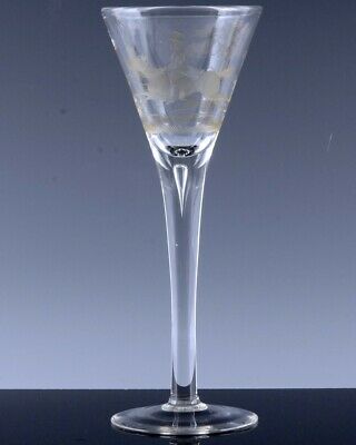 RARE C1820 GEORGIAN BLOWN GLASS HORSE RIDER FOX HUNT LANDSCAPE WINE GLASS GOBLET