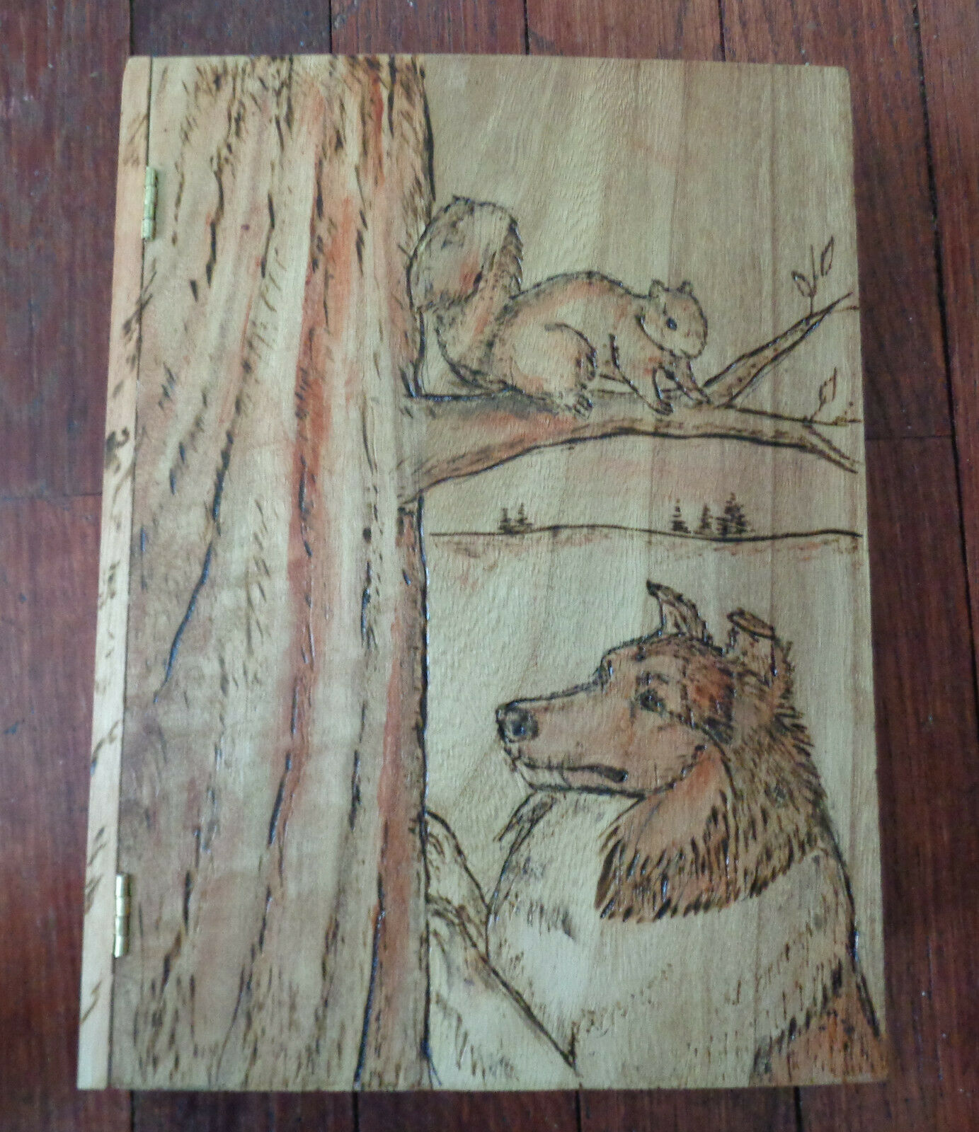 Wood burned Sheltie book shaped trinket box pyrography ooak