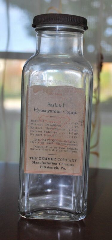 Title (ebay affiliate link): ANTIQUE PHARMACY MEDICINE BARBITAL HYOSCYAMUS COMP. ZEMMER COMP.