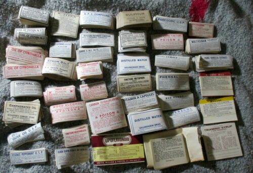 Title (ebay affiliate link): 100''S VINTAGE RX PHARMACY APOTHECARY LABELS POISON SALT ALCOHOL MENTHAL