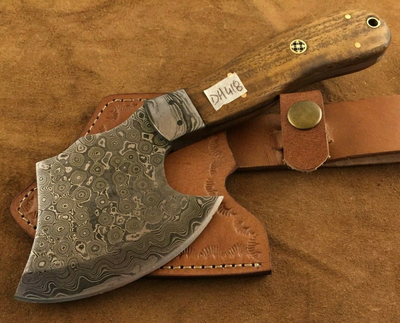 Title (ebay affiliate link): Handmade-Bush Craft Damascus Steel Axe-Bush Craft-Camping Tool-EDC-dh418