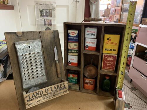 Title (ebay affiliate link): Vintage Primitive Kitchen/Pantry Tins & More Displays
