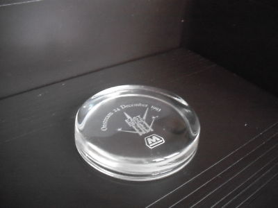 GLASS PAPERWEIGHT - MARATHON OIL - EAST BRAE ONSTREAM