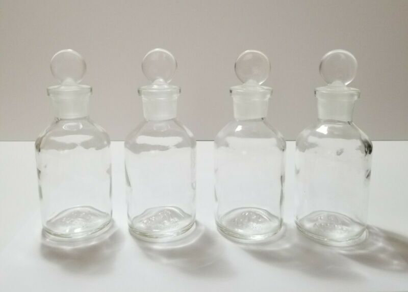 Title (ebay affiliate link): Apothecary Bottles With Penny Stoppers - Set of 4 - Approx 5.5 Inches Tall