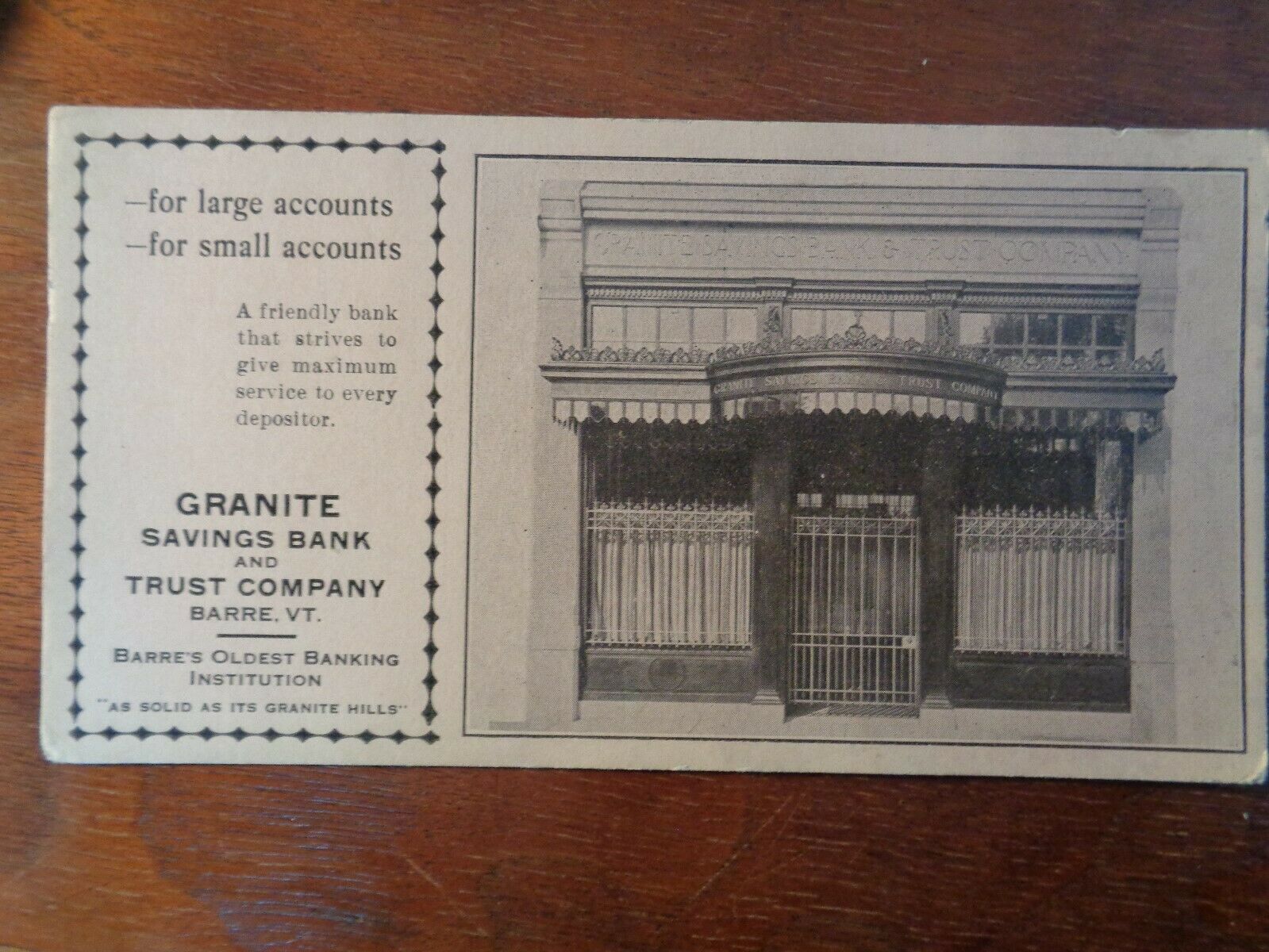 Vintage Vermont Blotter Granite Savings Bank and Trust Company Barre, Vermont