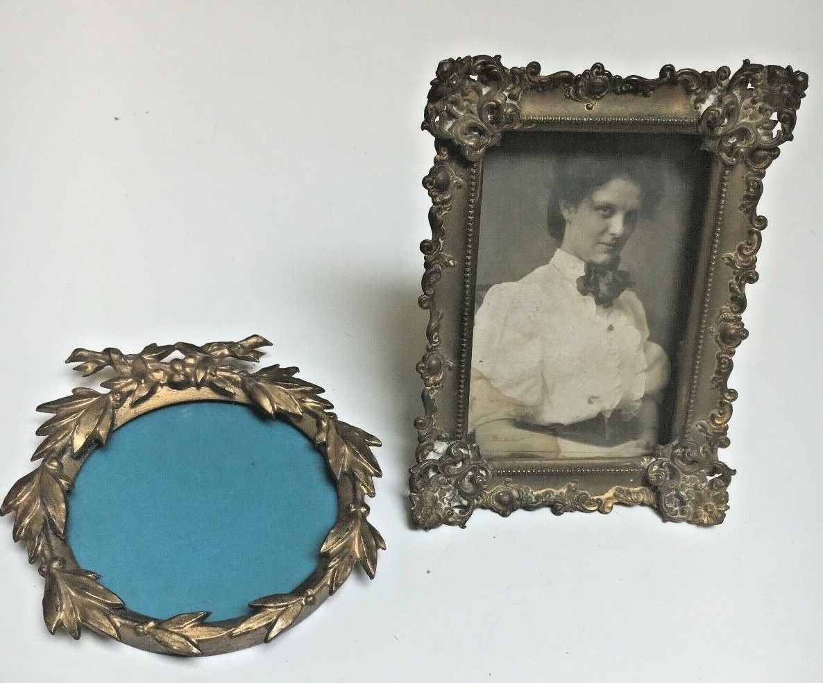 French antique small brass + spelter lot 2 fancy photo picture frames