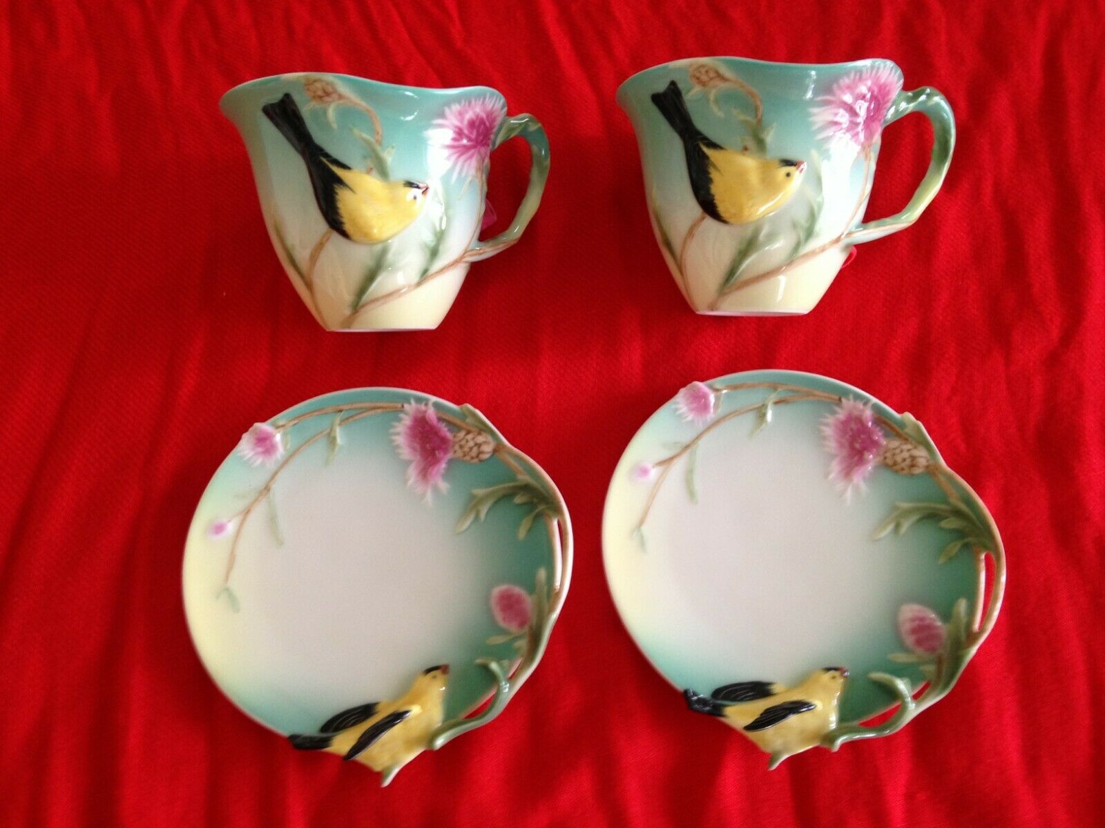 Title (ebay affiliate link): Franz Porcelain FINCH AND SAUCER Teacup Set { FZ00039 } - 2 TOTAL / NEW