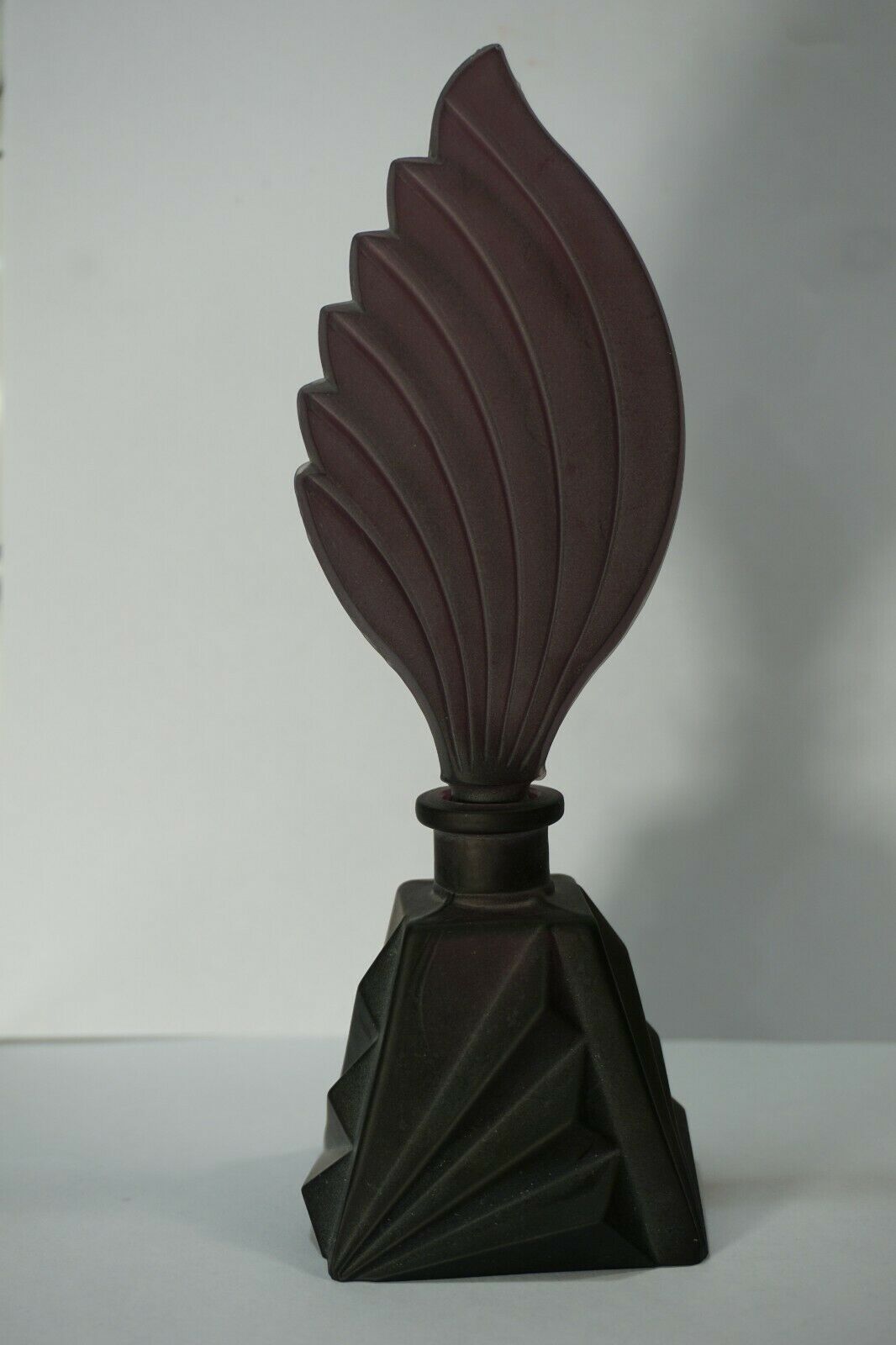 Frosted Dark Purple Czech Glass Art Deco Perfume Bottle With Fan / Wings Stopper