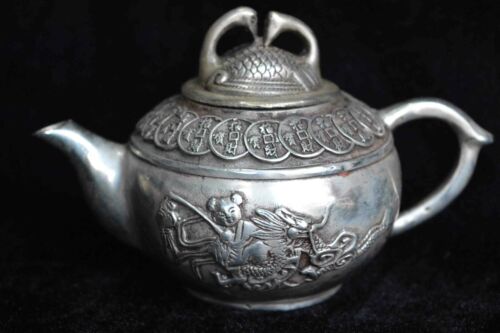 Title (ebay affiliate link): Souvenir Ancient Miao Silver Carve Lucky Doll Ride Dragon Collection Old Teapot