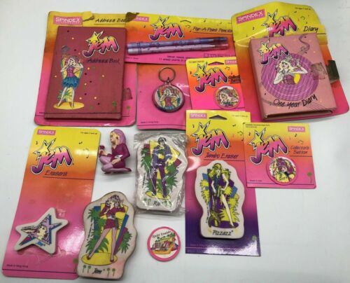 Title (ebay affiliate link): Vintage Spindex JEM Buttons, Erasers, Key Chain, Diary, Pencils Collectible Lot