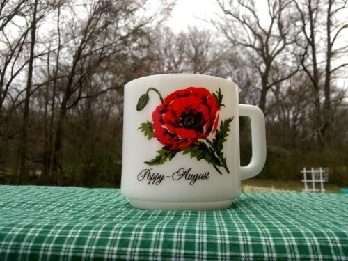 Title (ebay affiliate link): Vintage Flower of the Month Poppy for August Coffee Mug Milk Glass