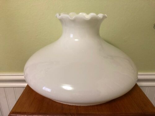 Title (ebay affiliate link): VTG WHITE MILK GLASS HURRICANE LAMP SHADE GLOBE - LARGE 10" FITTER - RUFFLE TOP