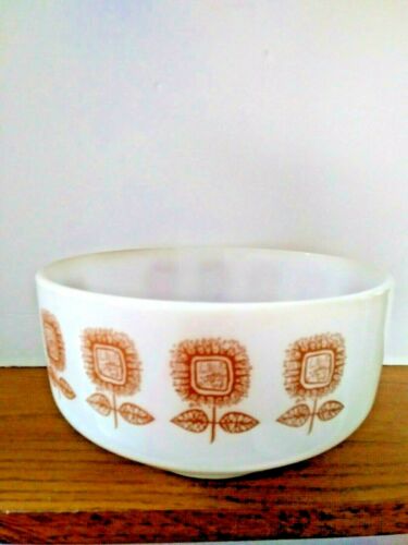 FEDERAL GLASS MCM MILK GLASS 2 1/2 Q BROWN SUN FLOWER DESIGN MIXING BOWL MINT