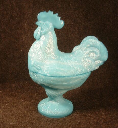 Title (ebay affiliate link): P V France Portieux Vallerysthal Blue Milk Glass Rooster Candy Dish