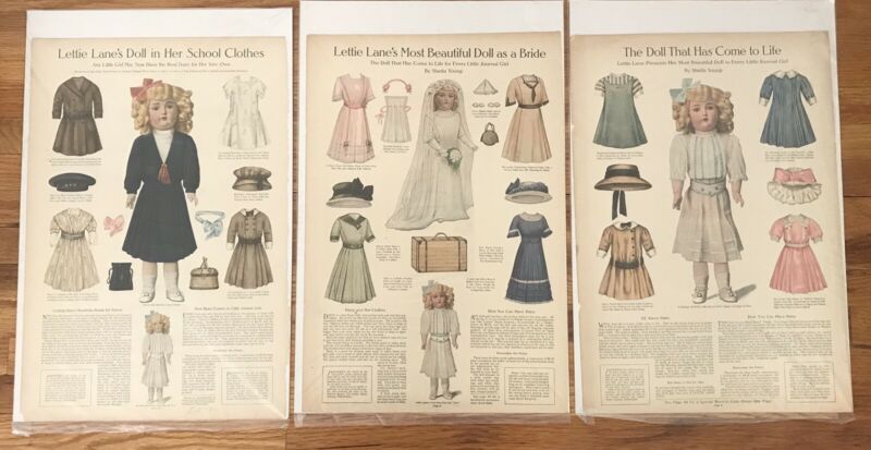 3 sheets 1911 Lettie Lane Paper Dolls Magazine Ladies Home Journal vintage