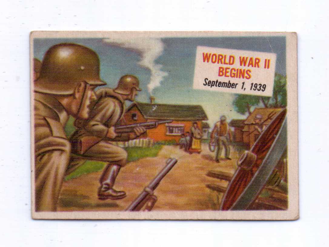 Title (ebay affiliate link): 1954 TOPPS SCOOPS #32 WORLD WAR II BEGINS EX