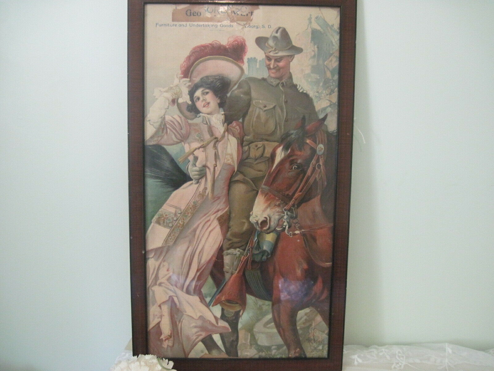 Antique WWI Embossed Store Advertising Sign Poster Furniture Undertaking Funeral
