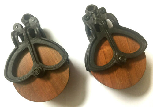 Title (ebay affiliate link): Pottery Barn Cast Iron & Wood Pulleys *2* NEW ~ 7"~ Primitive~ Barn~Rustic Decor