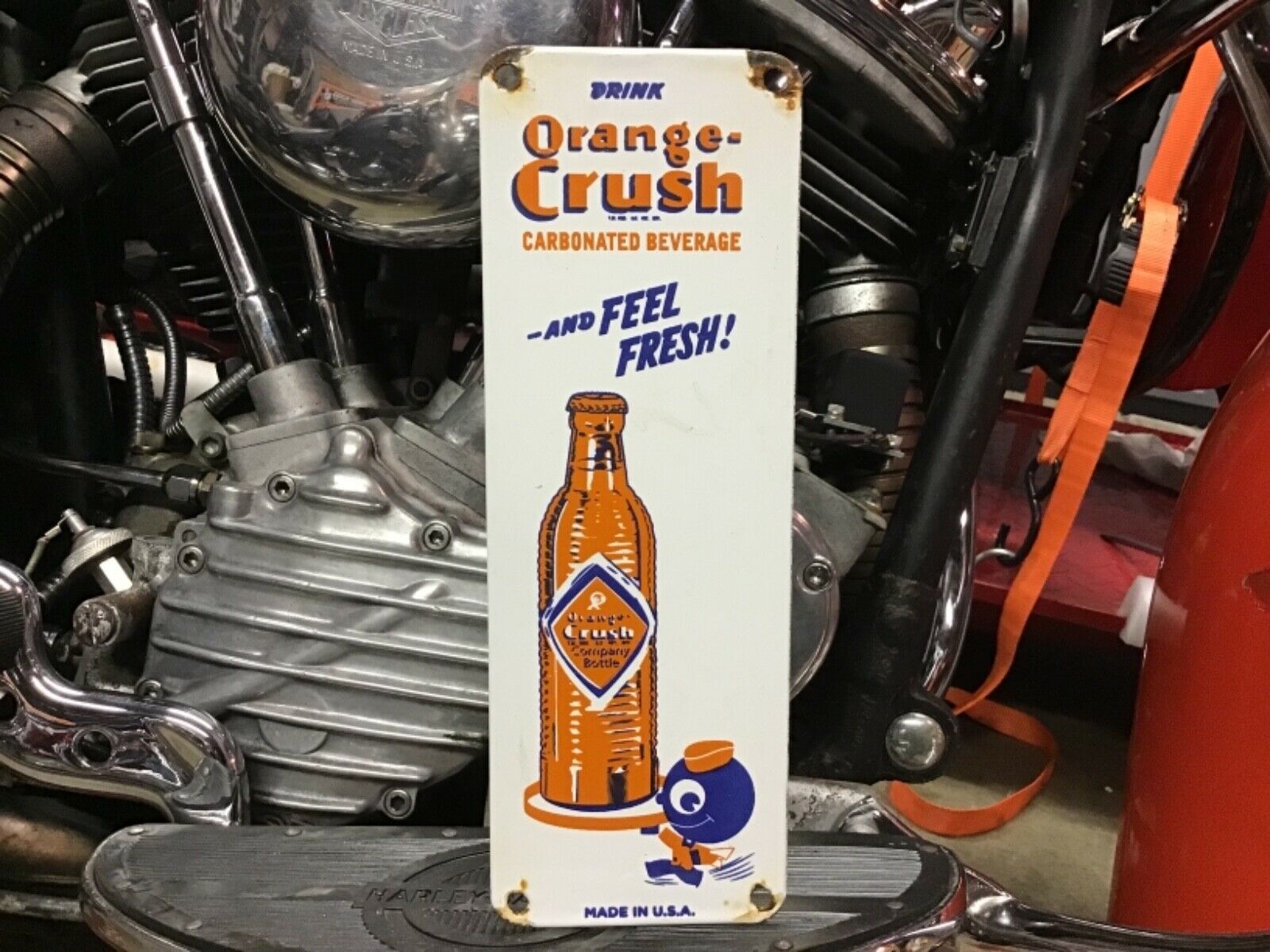 Title (ebay affiliate link): VINTAGE PORCELAIN DRINK ORANGE CRUSH DOOR PUSH Coca-Cola Pepsi 7-up Broncos