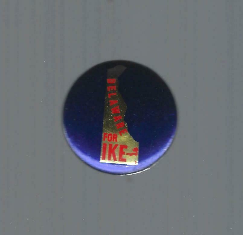 Title (ebay affiliate link): 1950s DELAWARE FOR IKE EISENHOWER - STATE OUTLINE CAMPAIGN BUTTON
