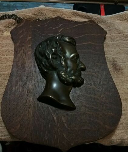 Title (ebay affiliate link): Antique Bronze Abraham Lincoln Wall Hanging Plaque Marked with an X