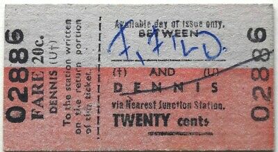 VR Ticket - DENNIS (U) to FAIRFIELD - 20 cent Pricecard Blank - 1979