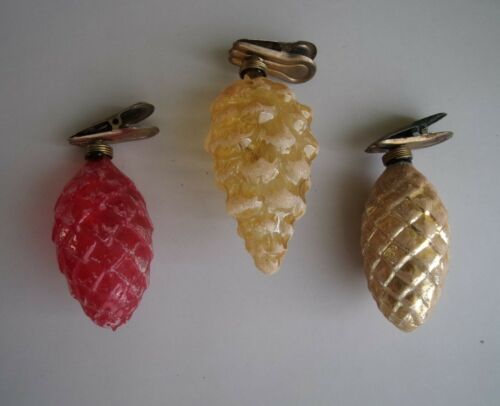 Title (ebay affiliate link): Lot of 3 VINTAGE CLIP ON BLOWN GLASS PINE CONES CHRISTMAS ORNAMENTS