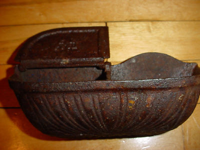 ORNATE PRIMITIVE ANTIQUE CAST IRON STOVE MATCH HOLDER