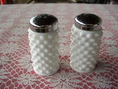 WHITE HOBNAIL MILK GLASS SALT PEPPER SHAKERS nice l@@k