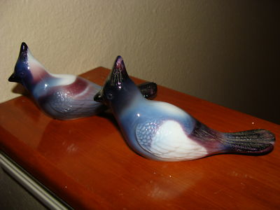 Lot of 2 Westmoreland Milk Glass Blue Jay Birds SLAG