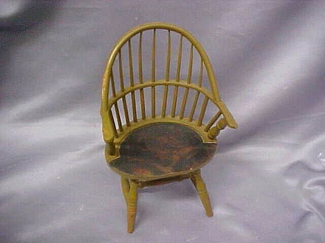 Wood Child''s Doll Windsor Chair lightly stained green and brown good condition