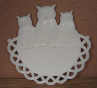 Westmoreland Milk Glass Owl Tray Plate early 1900's Pat
