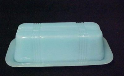 Milk Blue Glass Covered Long Stick Butter Dish New