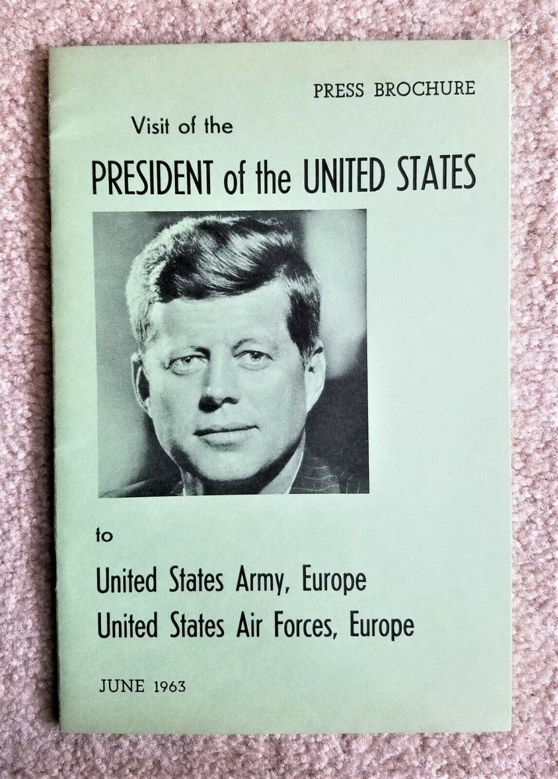 Title (ebay affiliate link): 1963 JFK VISIT TO GERMANY - PRESS BROCHURE FOR U.S. ARMY POST STOP