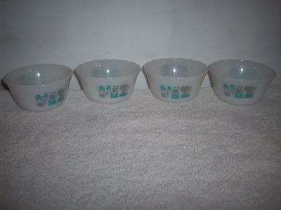 4 VINTAGE BAKING CUPS MILK GLASS RETRO KITCHEN DESIGN