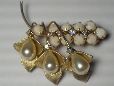 LOVELY VINTAGE "JONQUIL" DESIGN BROOCH~ MILK GLASS & AB