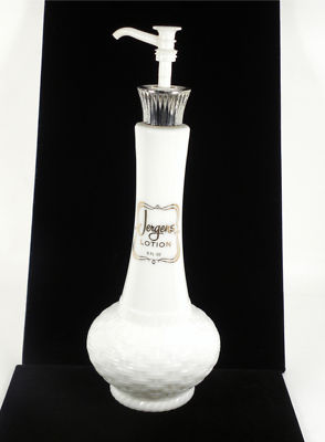 Vtg JERGENS Lotion Bottle Milk Glass Pump 1950`s-60`s