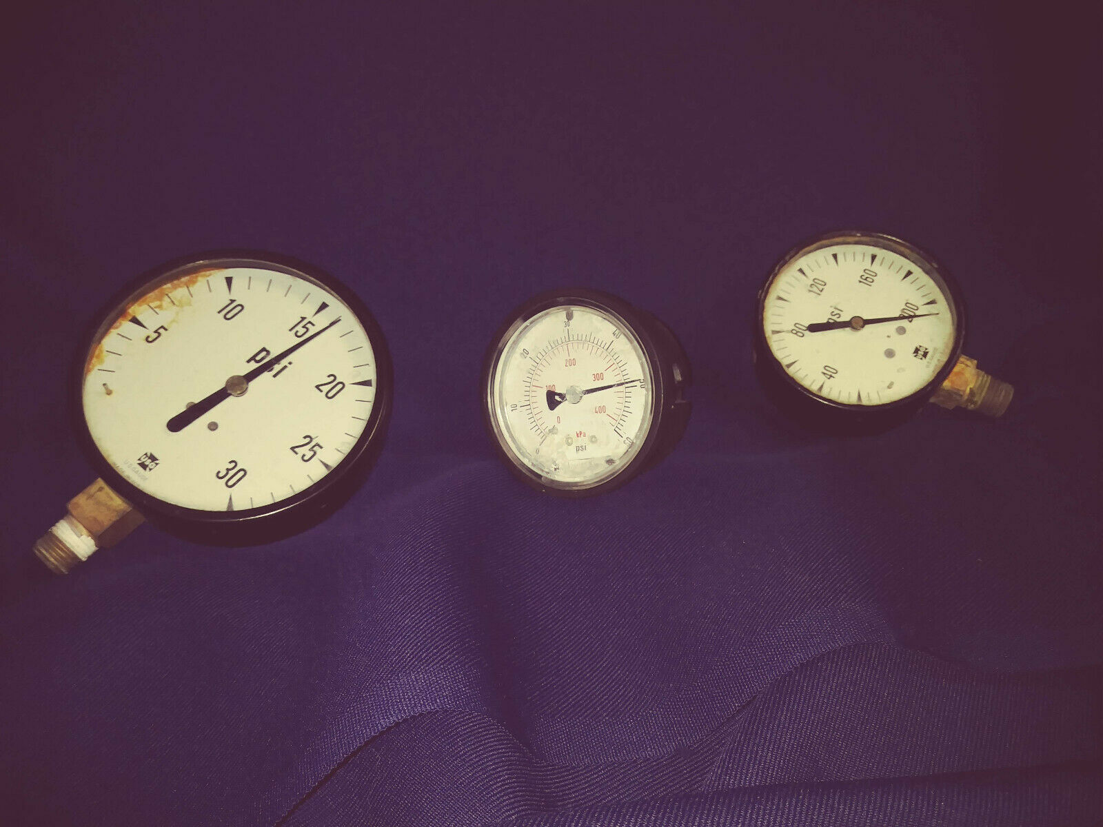 Lot of Three Pressure Gauges for steampunk swords or lamps or decor used